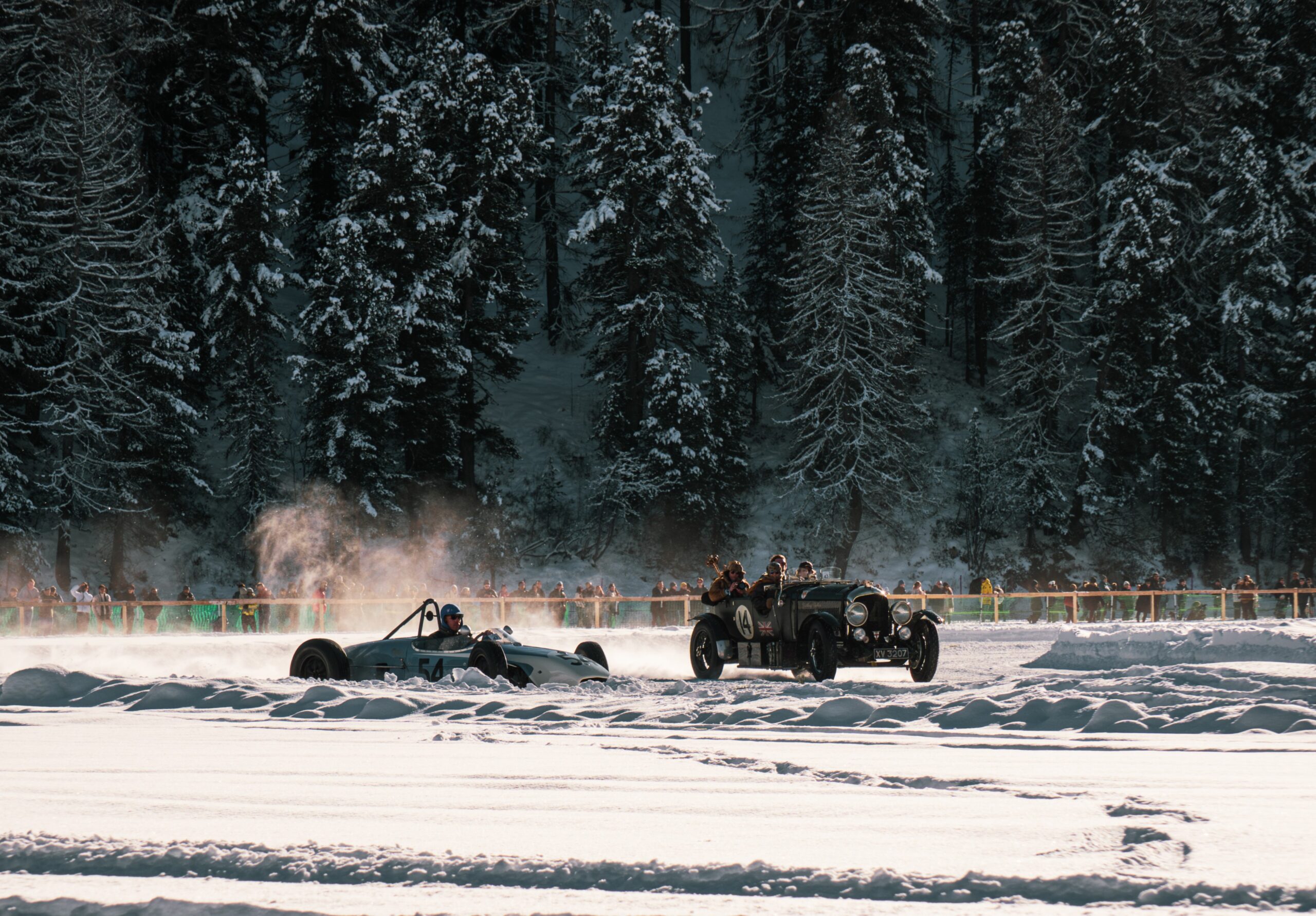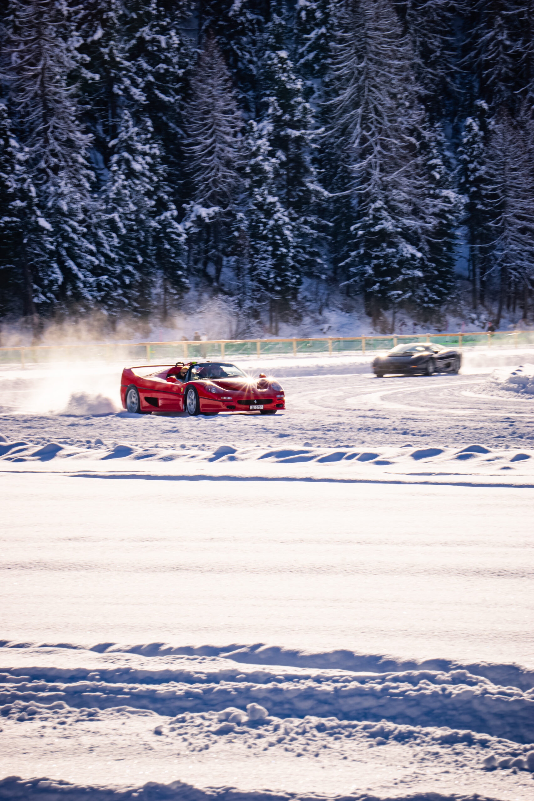 St. Moritz, Switzerland — On a winter’s day in the Engadin, Lake St. Moritz (southern eastern part of Switzerland) isn’t just frozen, it becomes a high-speed playground. Over fifty rare cars, worth hundreds of millions of Swiss francs, roar and drift across a thick layer of ice (40cm), their cars fitted with studded snow tyres, tracing daring lines where water should be! In summer, this lake flows calmly. In winter, it becomes a stage for automotive spectacle. Watching these machines glide and slide on solid ice is an unforgettable thrill.